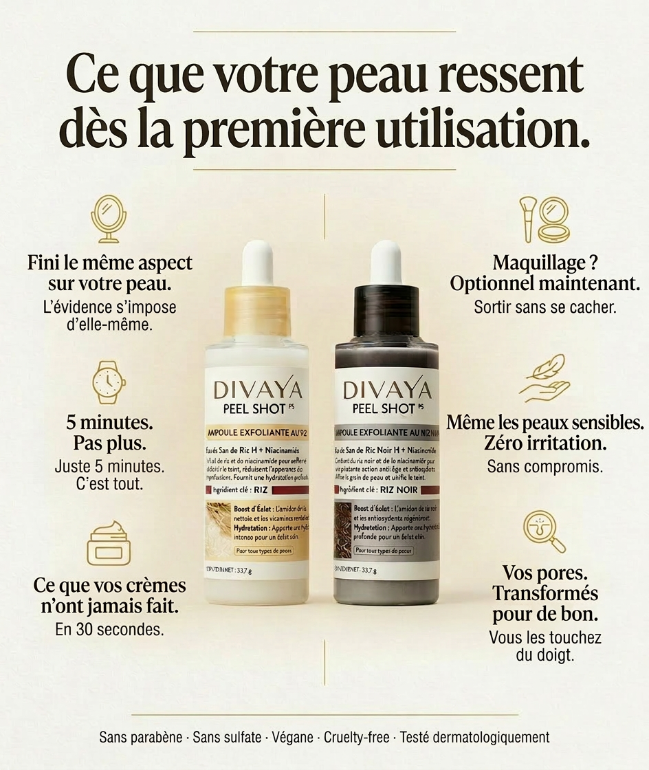 Le Peel Shot DIVAYA — 30 secondes pourrévéler ce que vos crèmes ne touchent jamais.